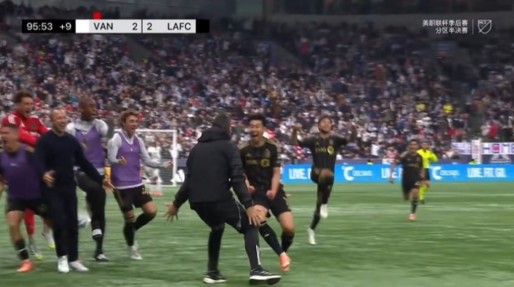 比赛下半场伤停补时第5分钟,孙兴慜任意球直接破门,洛杉矶2-2绝平温哥华。